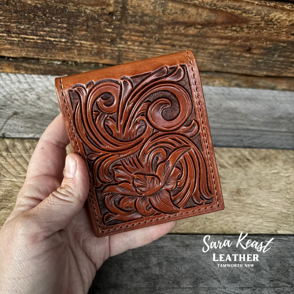 With 4 card pockets and a spring bar money clip, this wallet is big enough to hold your essentials cards and cash, but still easily fits into the back pocket.